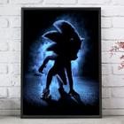 Quadro Decorativo Emoldurado Sonic Filme Fundo preto Para sala quarto