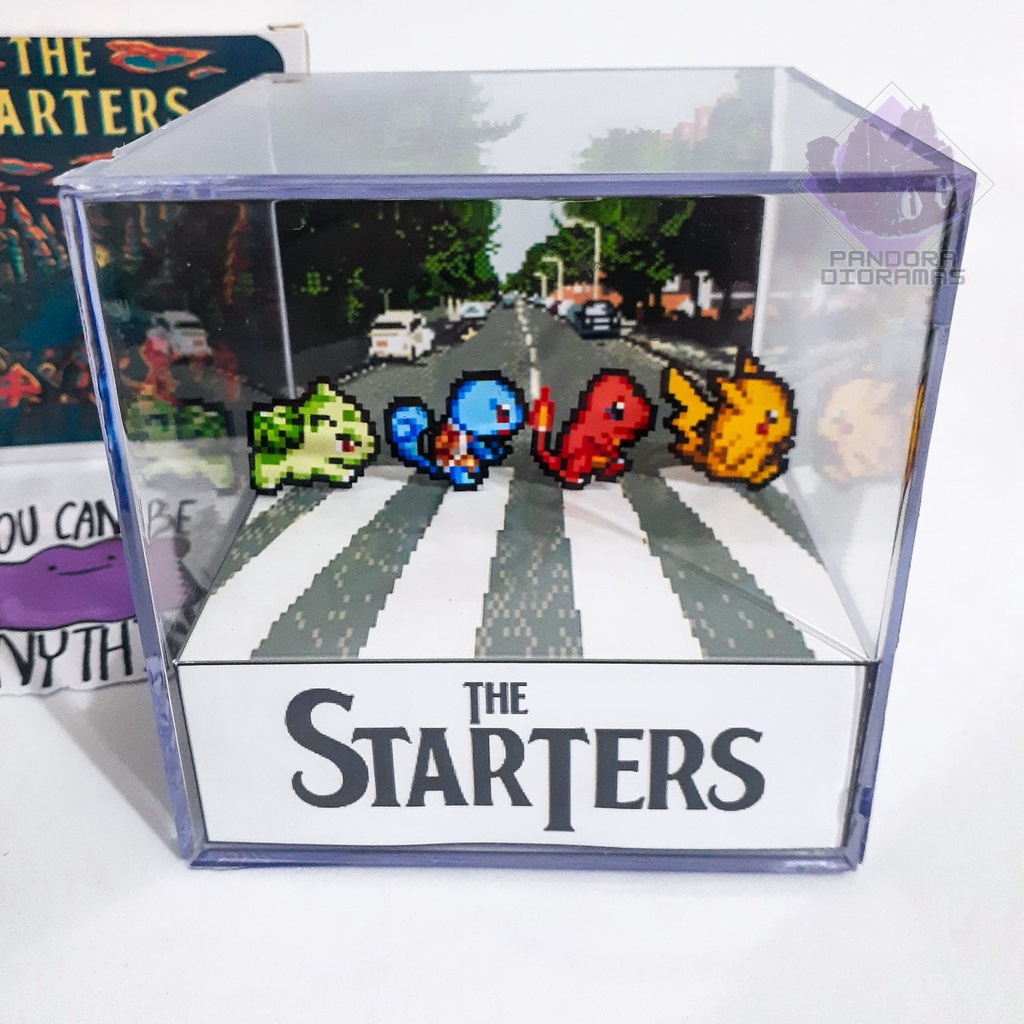 Diorama Pokémon The Starters em Abbey Road Cubo de Acrílico 9x9x9cm