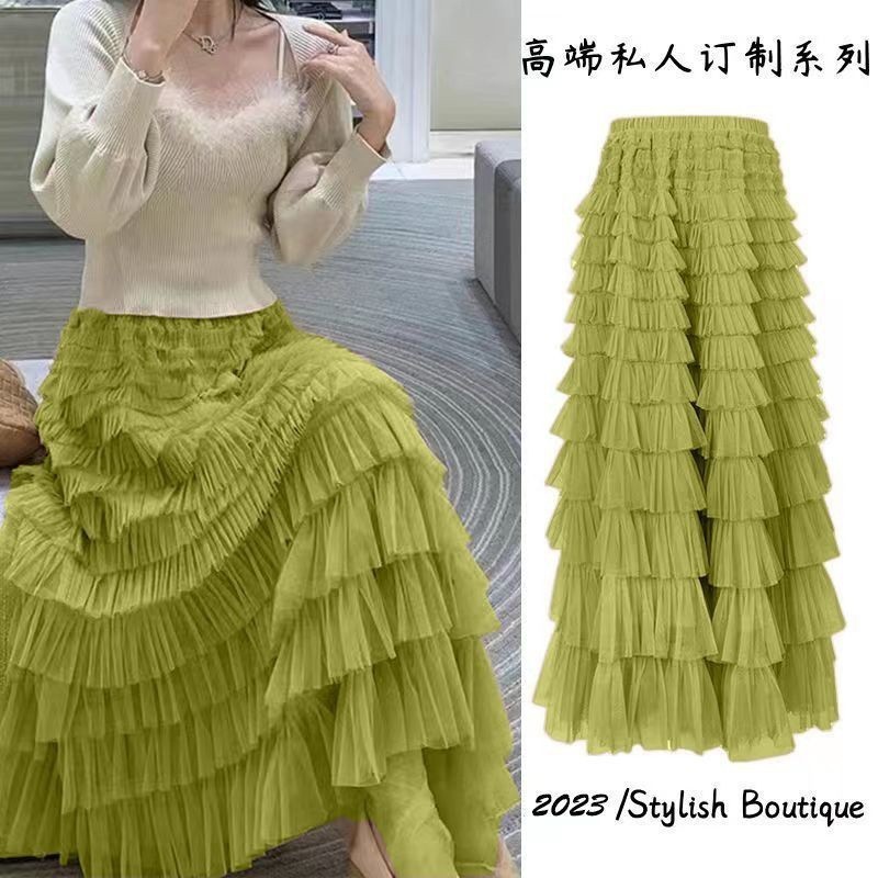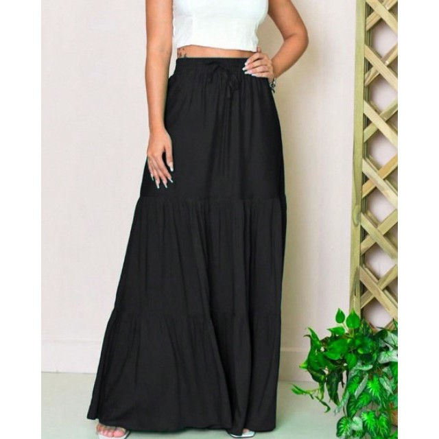 Saia Longa De Tule Feminina Com Babados Em Camadas Único