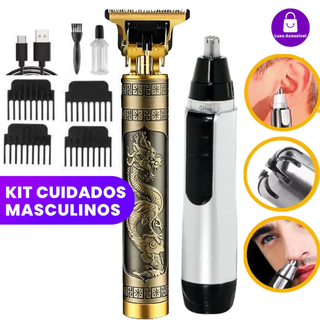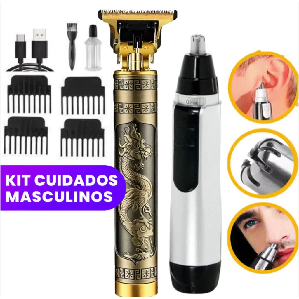 KIT Maquina cortar cabelo acabamento barbear barbeador eletrico pezinho vintage buda dragão t9