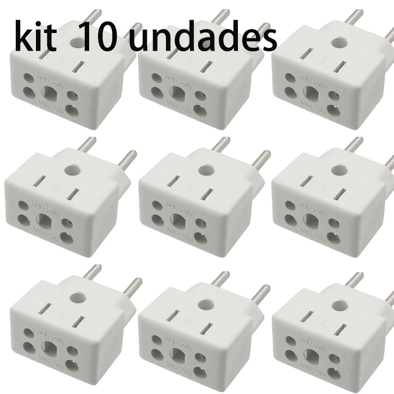 Kit Com 10 Adaptador De Tomada Bob Love 10a 20a 250V Bivolt Pino Plug Benjamim T Universal