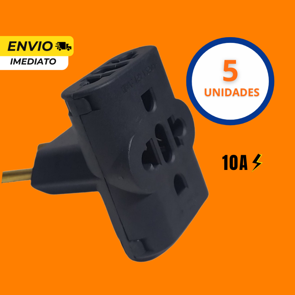 Kit 5 Adaptador Tomada T Benjamin 3 saídas Adptador de tomada 10A Plug Eletrico Multiuso Ts t ts tê