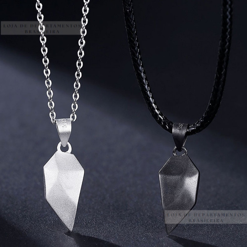 2 Peças Colar De Prata Com Pingente Magnético Em Formato De Coração De Três Pontas Da Amizade E Casal