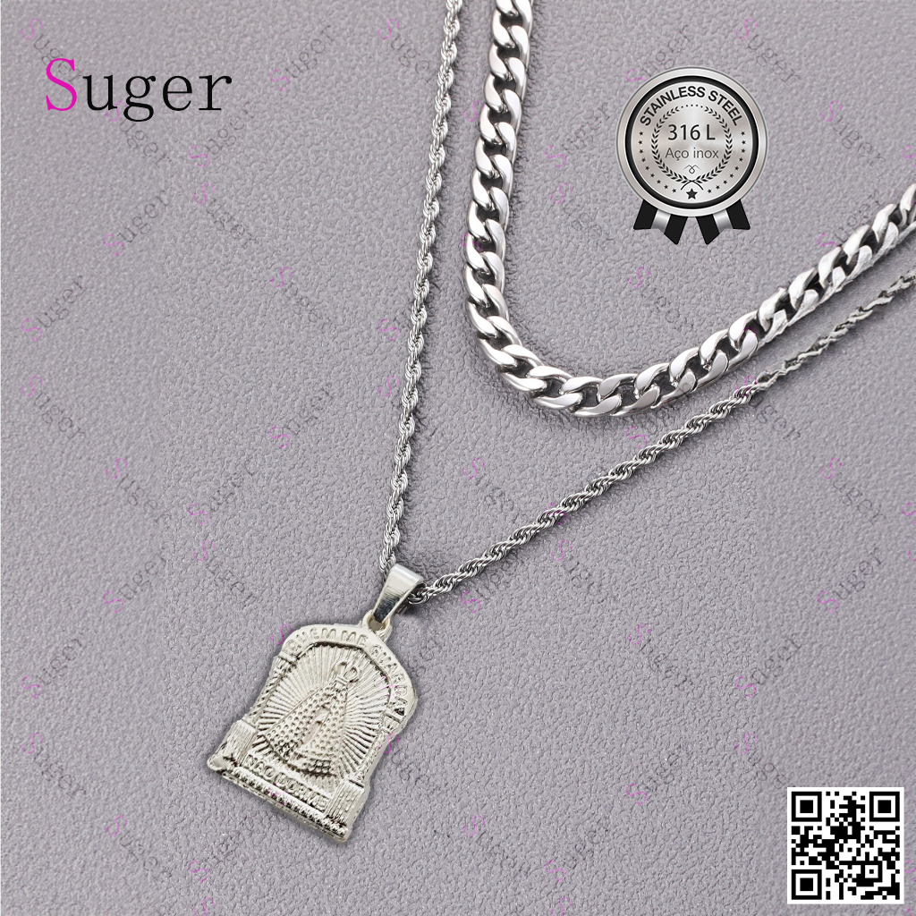 Fashionable E Popular 2 Peças Homens Decoração Pingente Nossa Senhora Colar Aço Inoxidável Para Jóias Presente E Para A Elegante