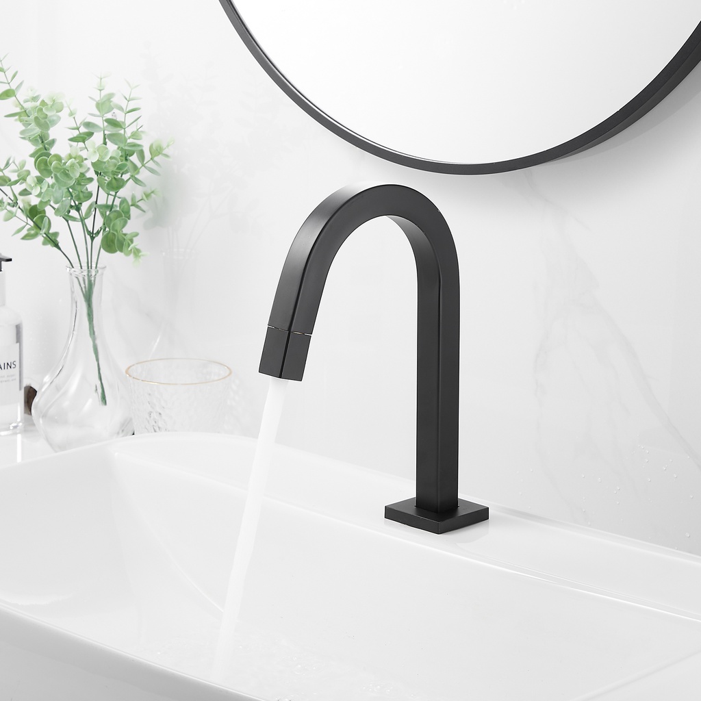 Torneira Pia Banheiro Bica Alta Misturador Design Cuba Luxo Preta Fosco Ca8206p