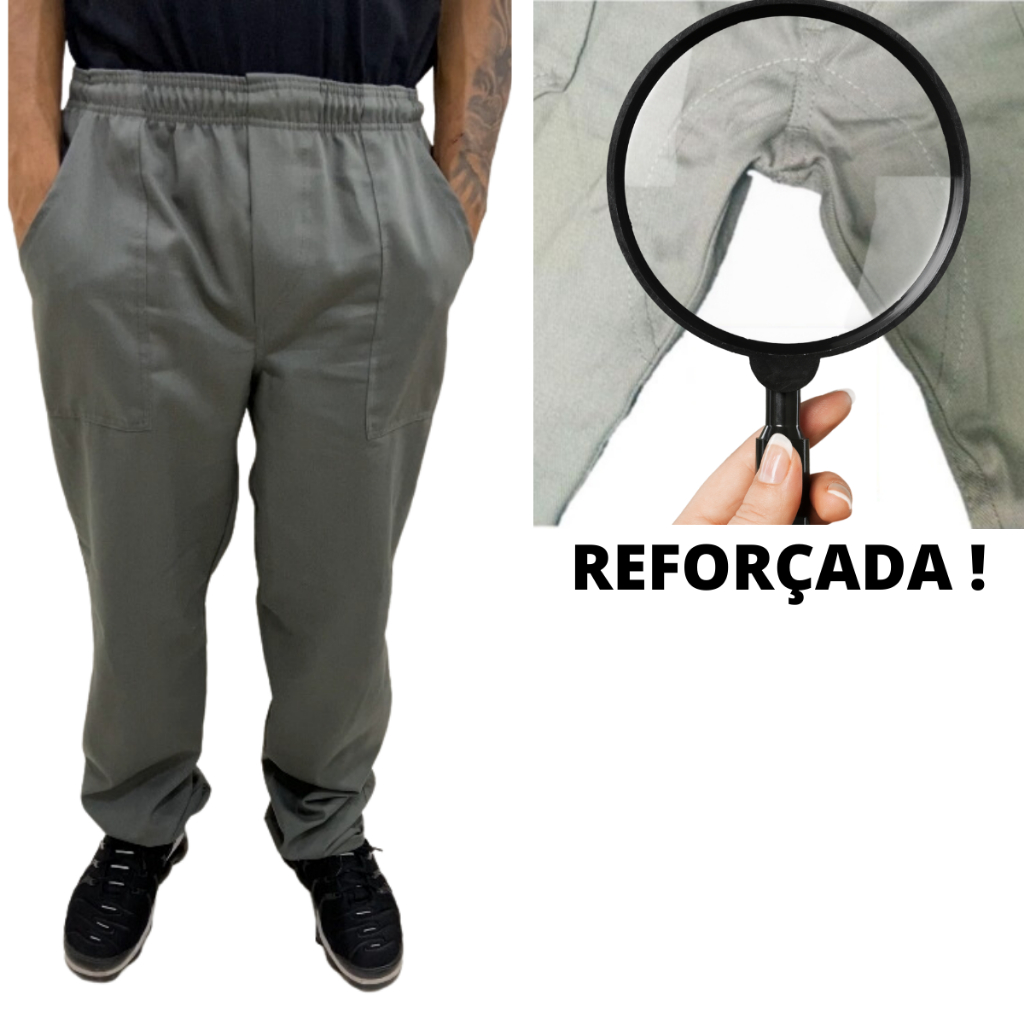 CALÇA REFORÇADA! Brim pesado SEM REFLETIVO sarja Cinza ou Preta fardamento uniforme profissional Construção Civil Reforçada entre pernas para trabalho pesado