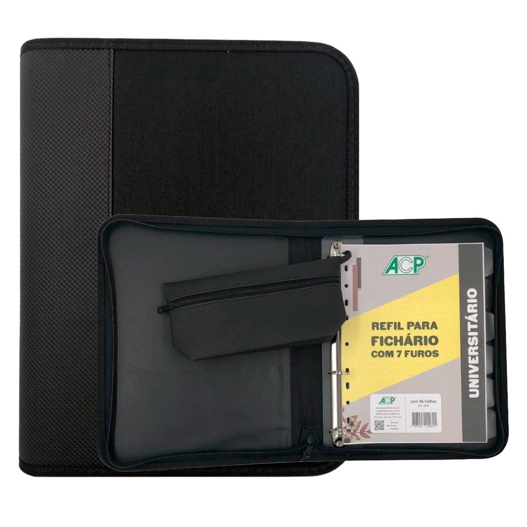 Fichário Universitário 4 Argolas Sweet Com Estojo Acp Preto
