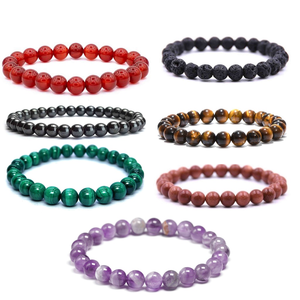 Pulseira Pedra Natural Bracelete Onix Olho de Tigre Masculina Feminina 8mm Envio Rápido