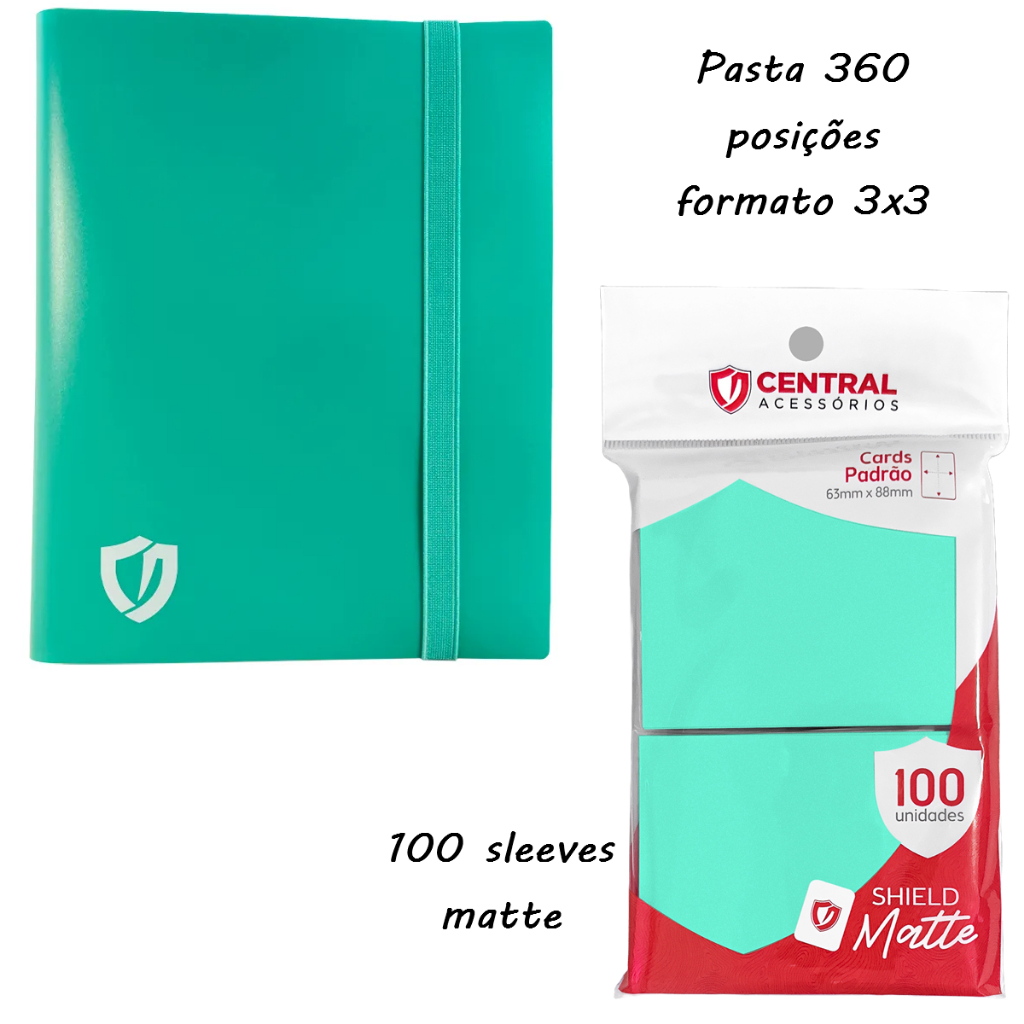 Kit Proteção Total para suas Cartas de Pokémon, Magic, Yu-gi-oh Fichário Pasta + 100 Sleeves