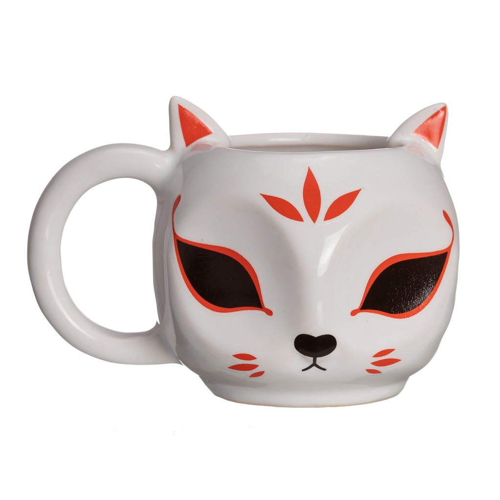 Caneca Raposa Japonesa Decorada 300 ML Cerâmica
