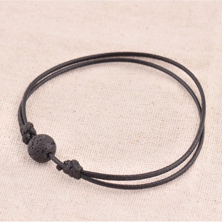 Pulseira de Couro Preta Feminina Masculina Pedra Larva vulcânica