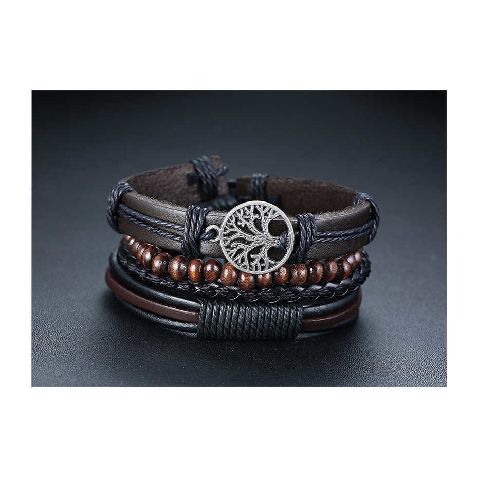 Braceletes Pulseira Masculina Árvore da Vida Multicamadas de Couro do Vintage Ajustável