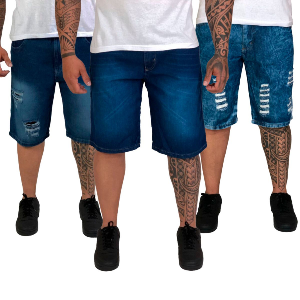 Kit 3 Bermuda Short Jeans Masculino Plus Size Big 36 ao 56 Alta Qualidade