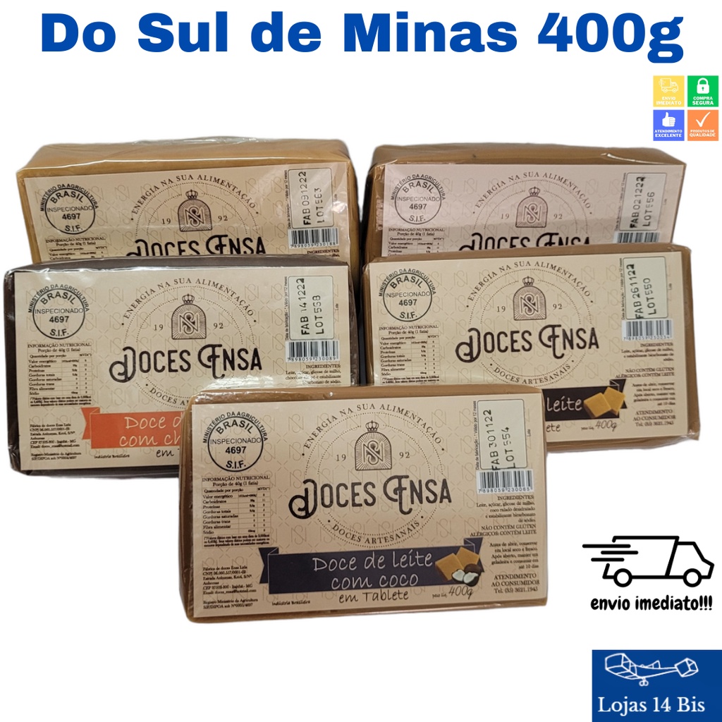 Doce de Leite Barra 400g Sabores Variados Sem Glúten Ensa Sul de Minas