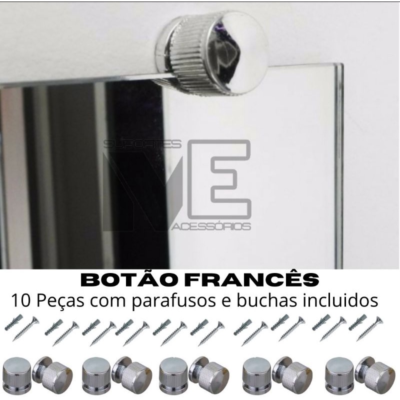 10 Unidades de Botão Francês com PARAFUSOS E BUCHAS para Espelho fabricado em PLÁSTICO METALIZADO FRANCÊS em ABS até vidro 6mm
