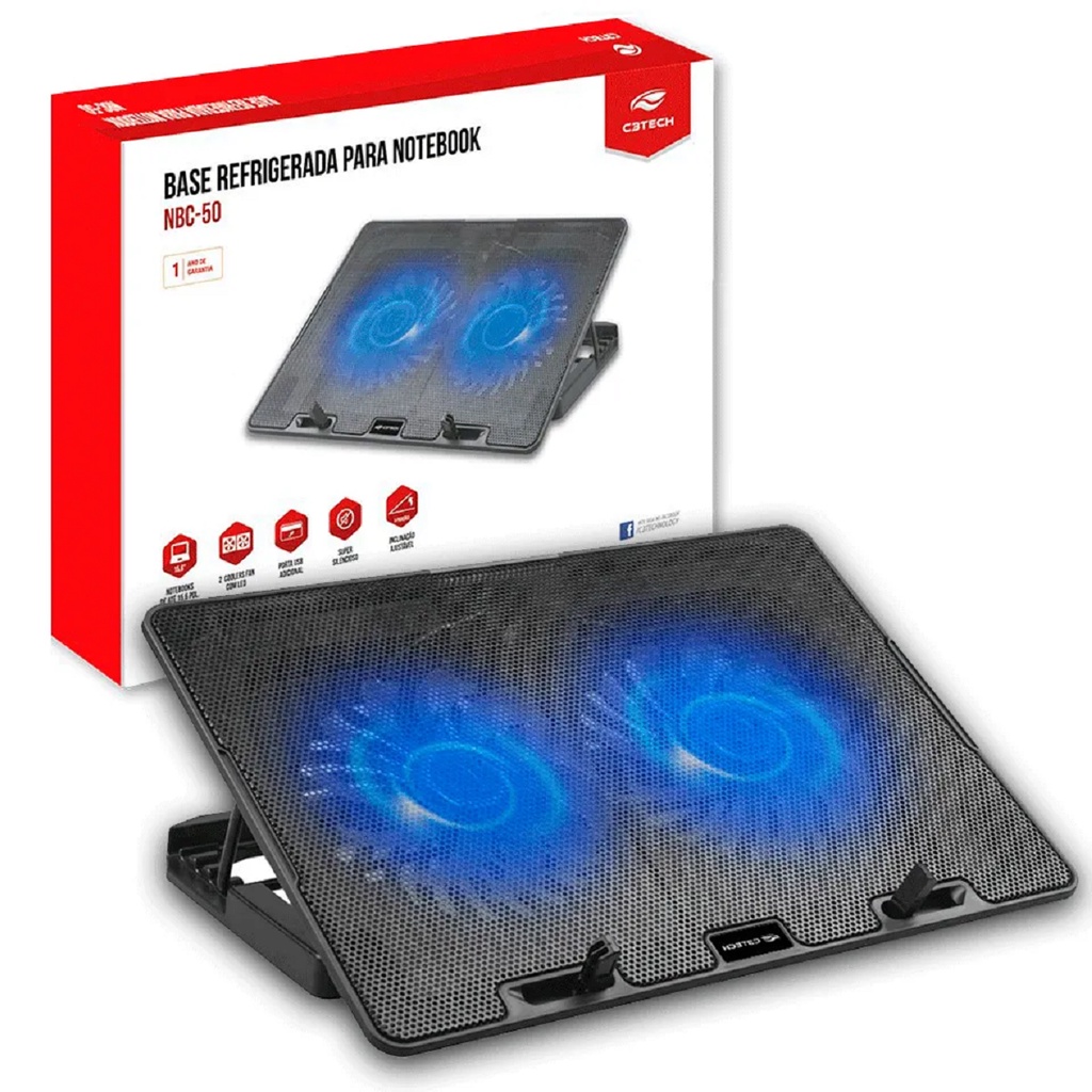 Base Suporte Notebook C3TECH Nbc-50bk"15-15,6"Led 2 Cooler azul vertical fan laptop refrigerado