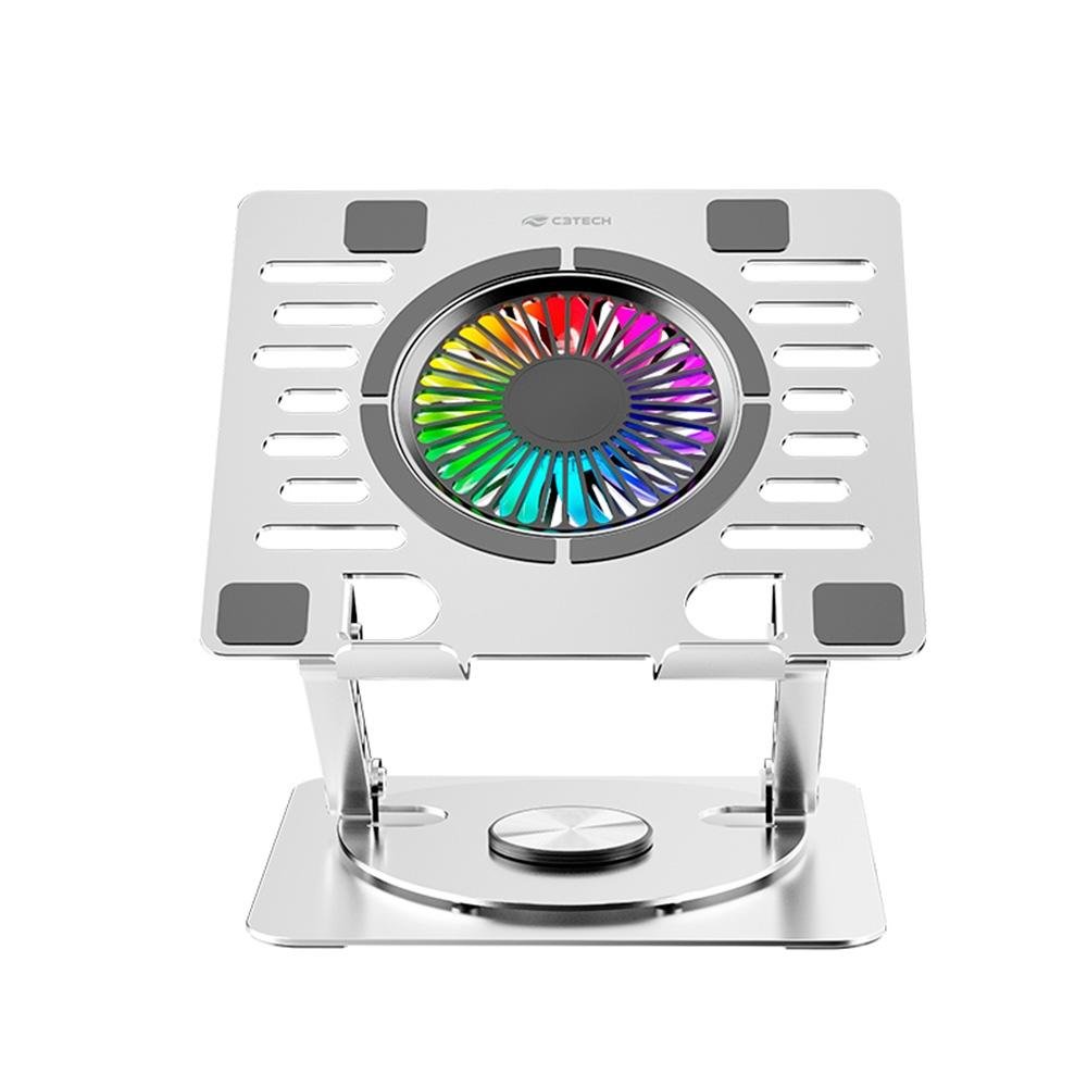 Base Para Notebook 15,6" Gamer C3Tech, LED Azul, Giratória, Branco - NBC-1000SI
