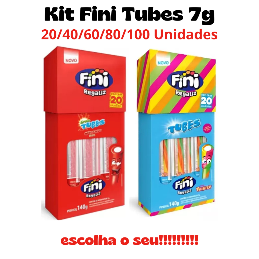 Kit Mini Fini Tubes 20,40,60,80,100 Unidades De 7 Gr Morango Ácido, Twister Ou Ambos