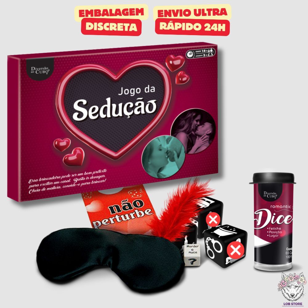 Kit Jogo da Sedução + Venda Tapa Olhos + Pena Sensual + Dados Sexy Copo de Shot Dice - Sex Shop