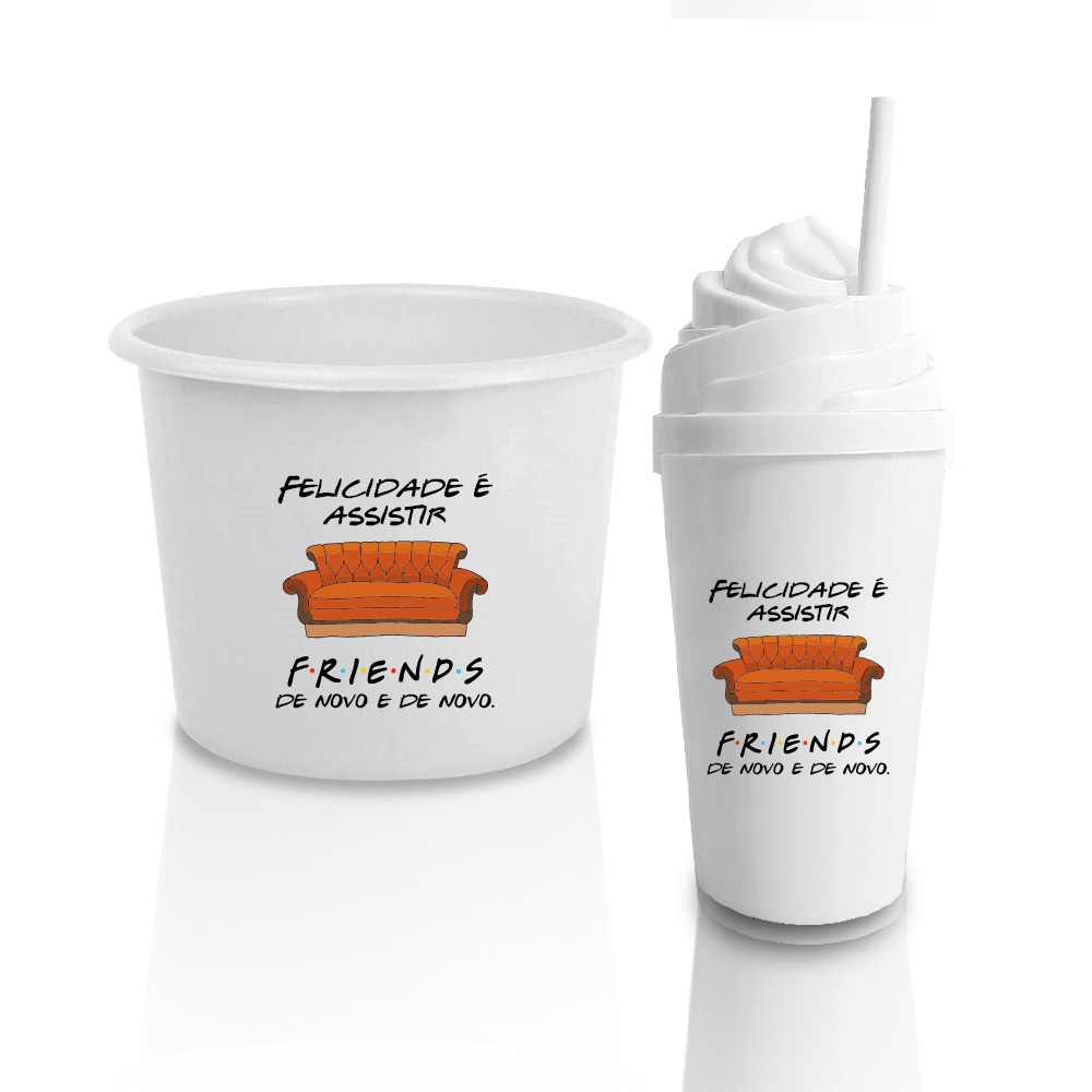 Kit Cinema (Copo Chantilly + Balde de Pipoca FRIENDS FELICIDADE )