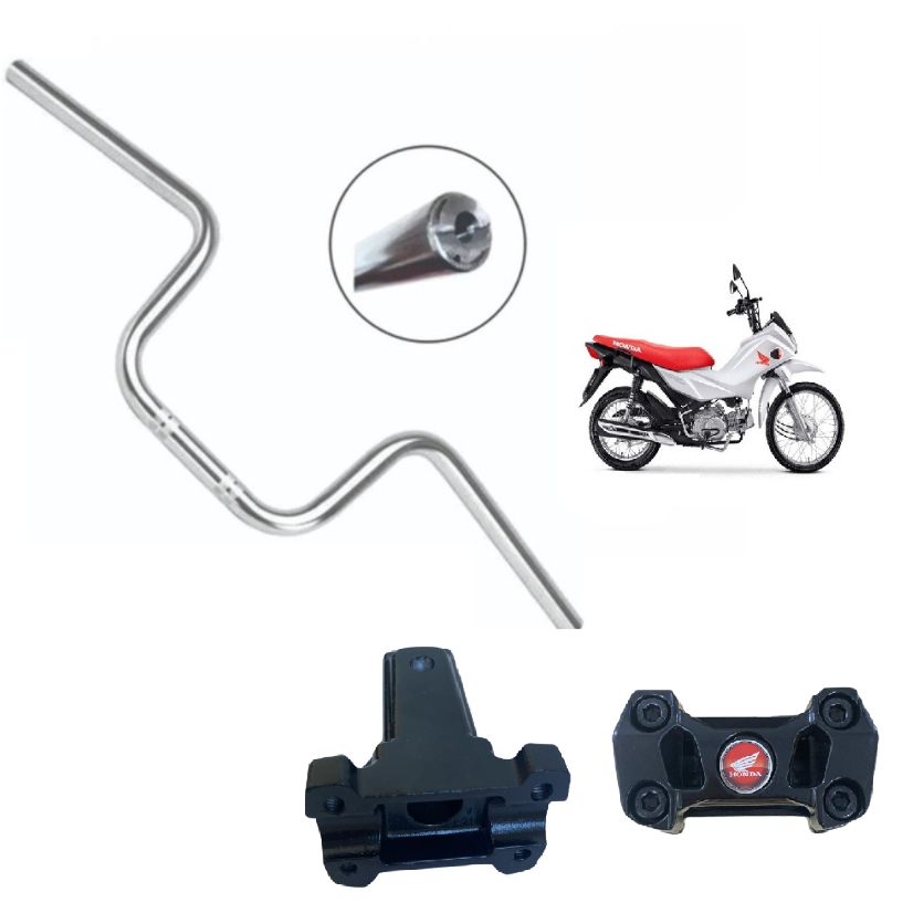 Guidão Cargo C/ Rosca Honda Cg Titan P/ Pop110 + Adaptador Mesa Guidão Pop 110 Mod CB100 Preto