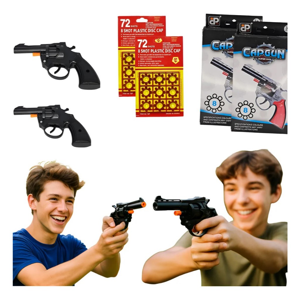 Kit de Brinquedo com Sons – Estilo Revólver Espoleta + 2 Cartelas