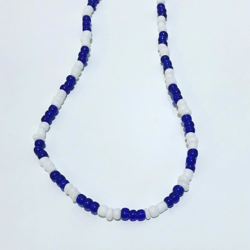 Guia de miçanga simples azul escuro e branco - Fio de contas - Umbanda - Candomblé - Ogum - Oxaguian