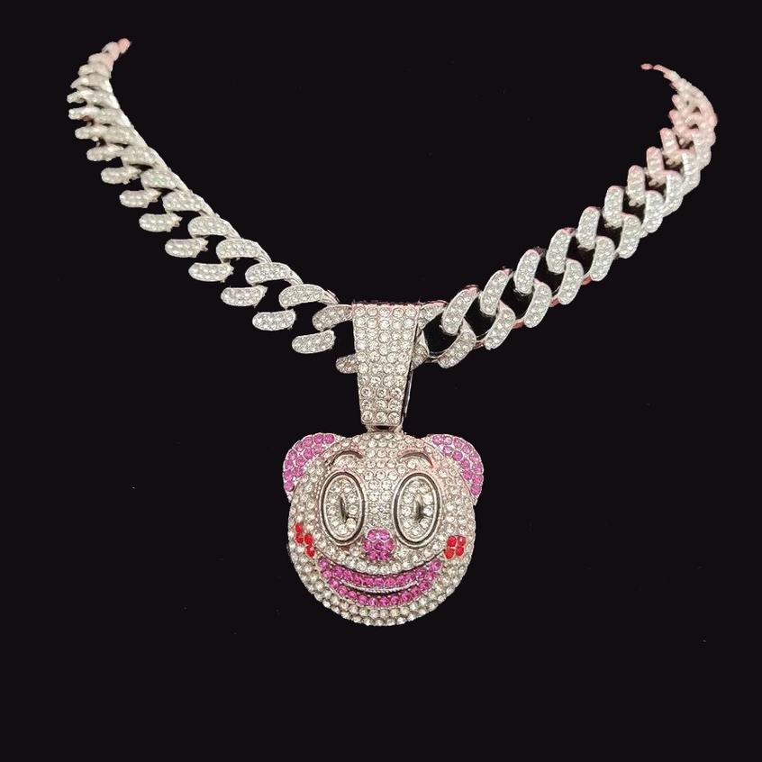 Colar corrente Ice cravejado com pingente Palhaço 50cm Modelo Ultra Premium Hip Hop