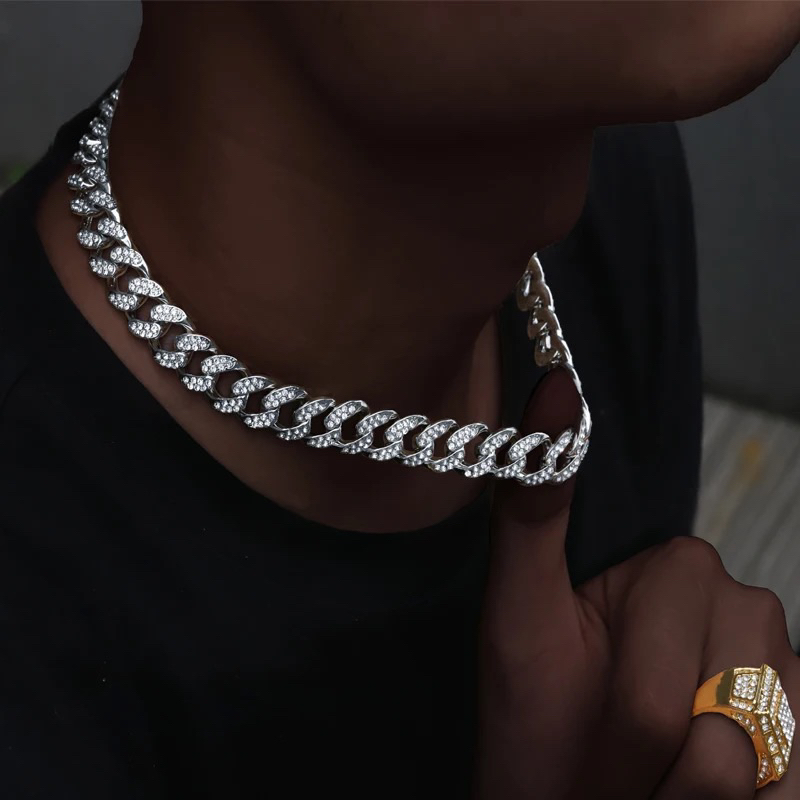 Colar Corrente Cuban Hip Hop ICE Trap Cravejado com Zircônias Brilhantes Alta Qualidade