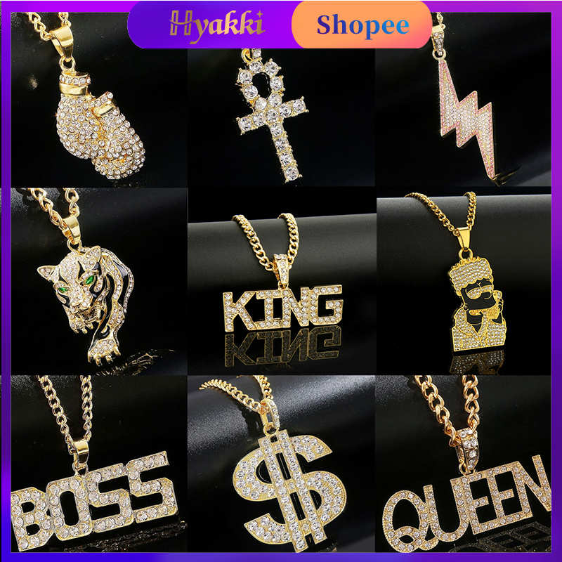 HYAKKI Diamante cordão masculino Pingente masculino Hip Hop ice cravejado Pingente Com Cadeia cubana Corrente masculina