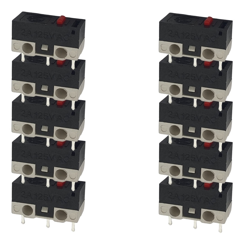Chave Fim De Curso KW10-A Micro Switch 3T 2A 125VAC sem Haste Para Mouse, Robótica - Kit 10 Peças