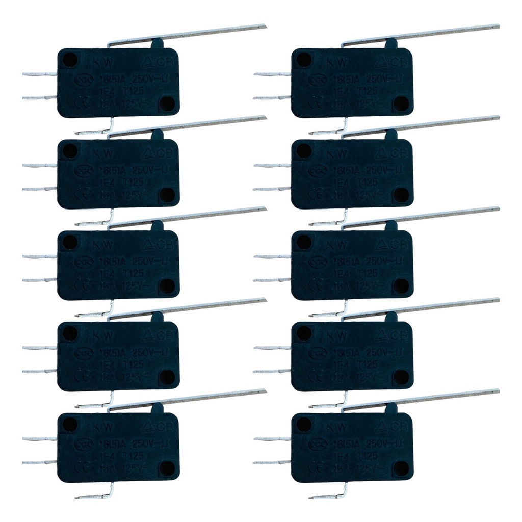 Kit 10 Unidades Chave Micro Switch KW10B 3T 1A 125V AC com Haste