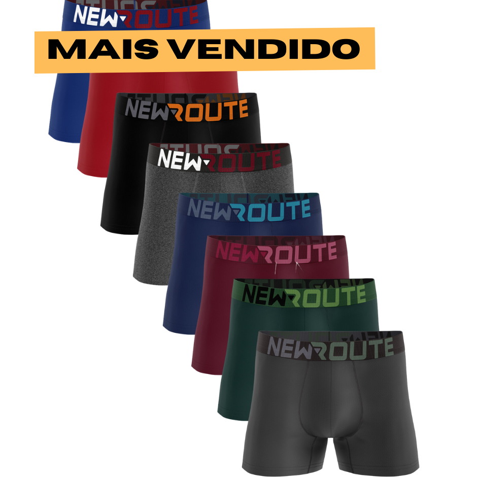 Kit com 10 - Cueca Box Boxer NEW ROUTE - Microfibra Lisa e Estampada