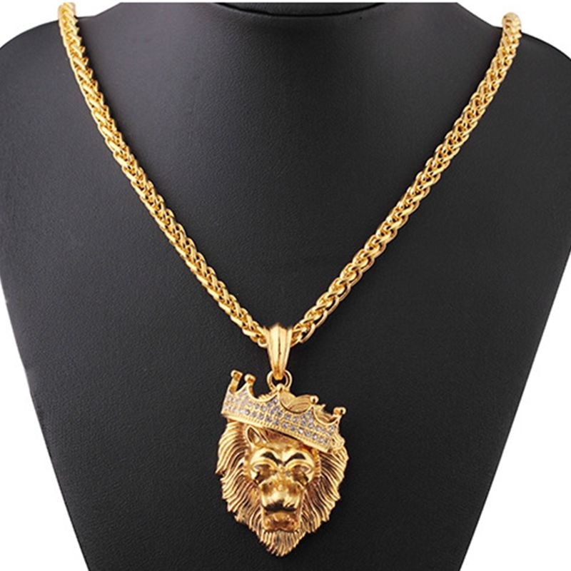 Colar De Cabeça De Leão De Aço Titânio Para Homens Hip Hop Crown