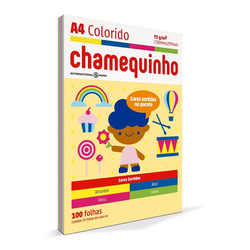 Papel sulfite A4 colorido 210x297 com 100 fls Chamequinho