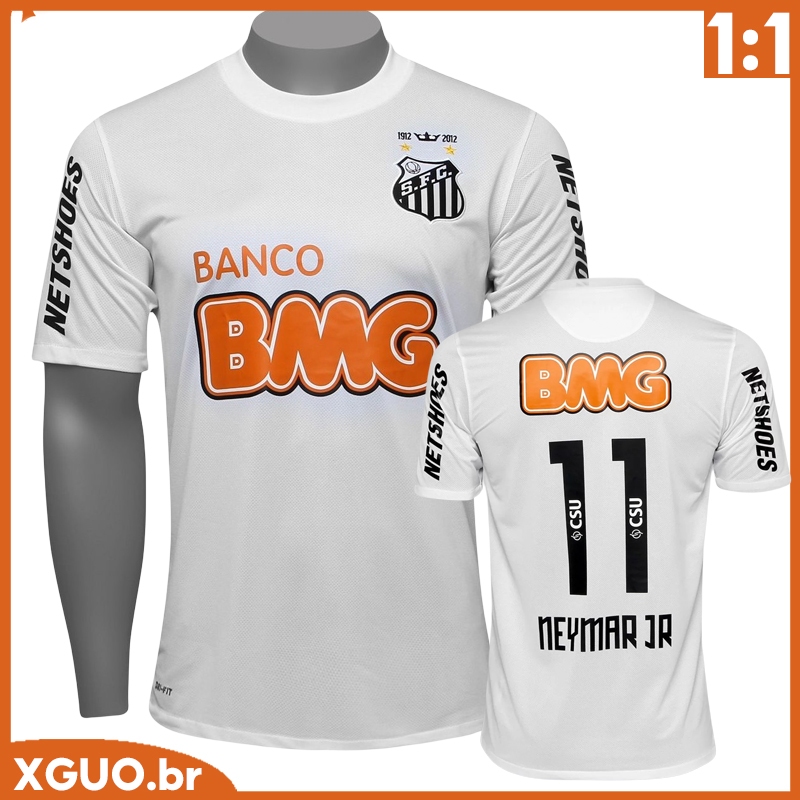 11-12 Camisa de Futebol Retro Santos FC I White NEYMAR JR Camiseta 2011 2012.