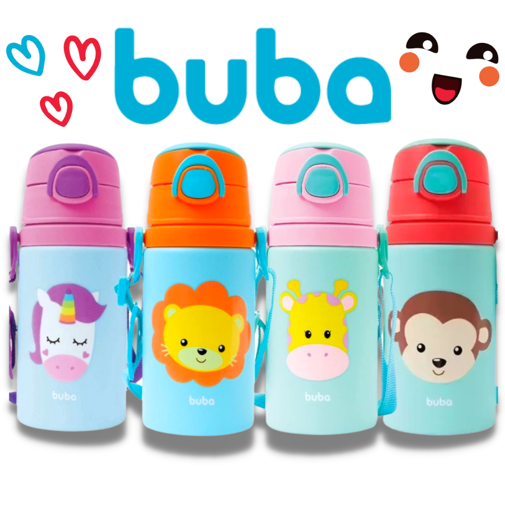 Garrafinha De Água Infantil Garrafa infantil Bebê Buba C/ Canudo de Silicone Aço Inoxidável 400ML