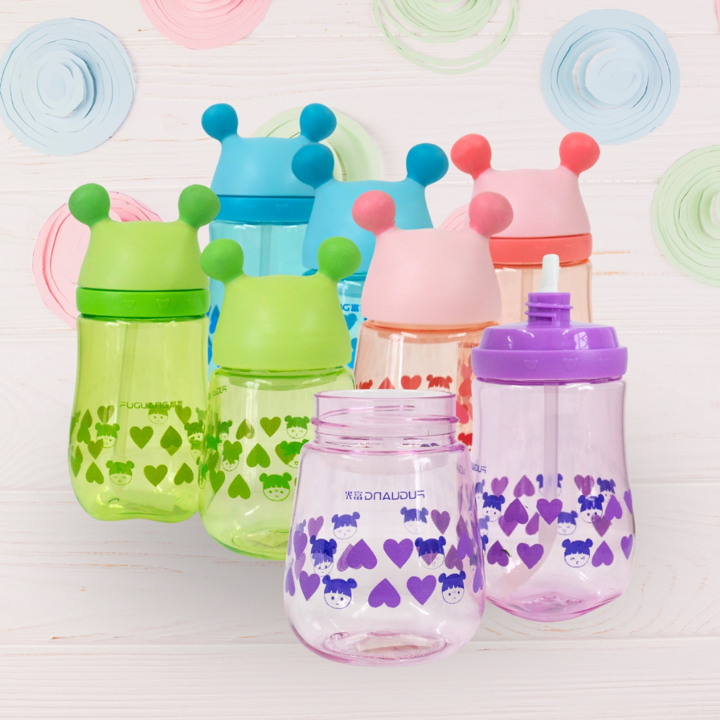 Garrafinha Garrafa De Agua Infantil Com Canudo Sem Canudo Plástico Retratil 350ml/400ml Tampa Fofa