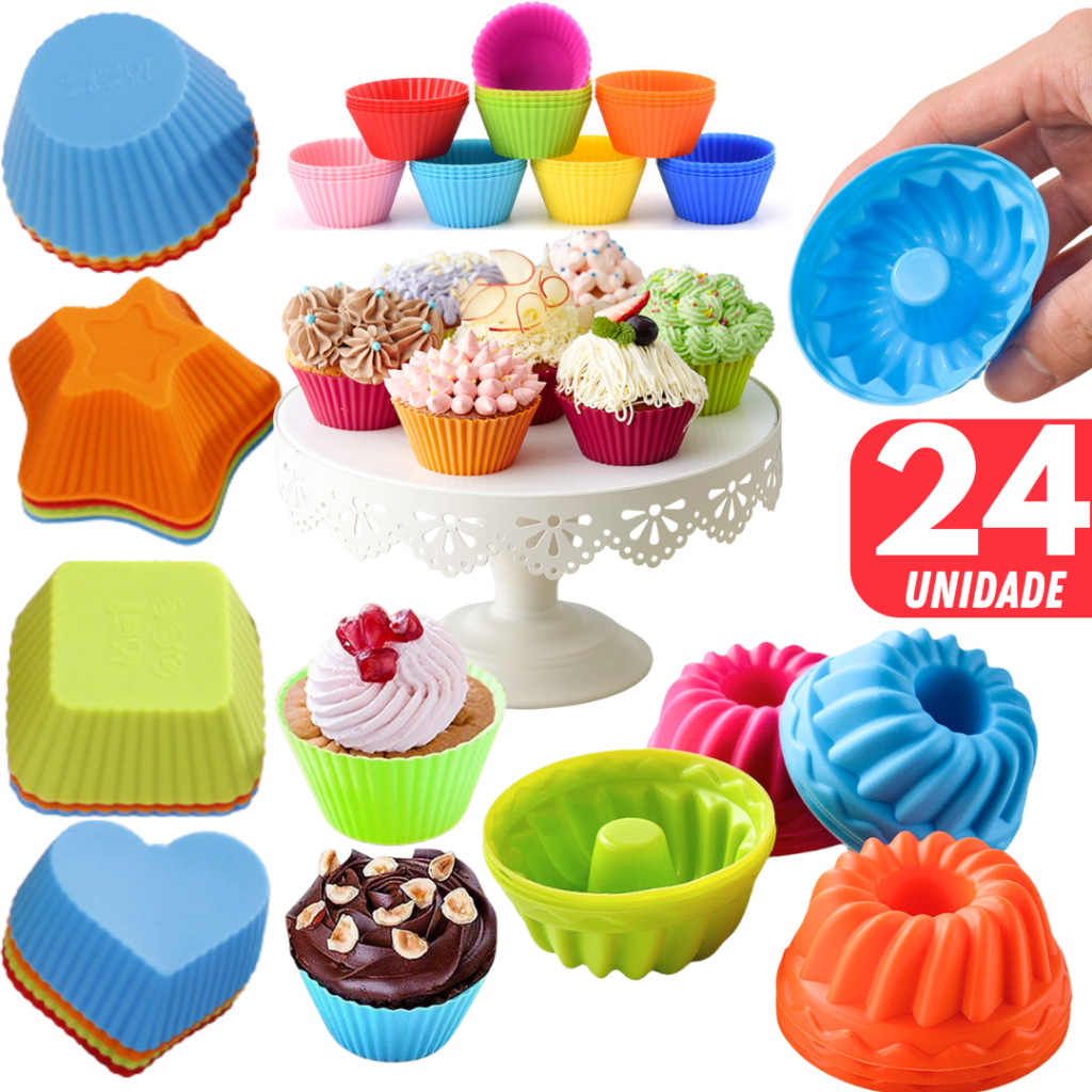 Forminhas Formas Silicone Cupcake Muffin Bolo Doces Vários Formatos Coloridas Kit com 6 ou 12 Peças