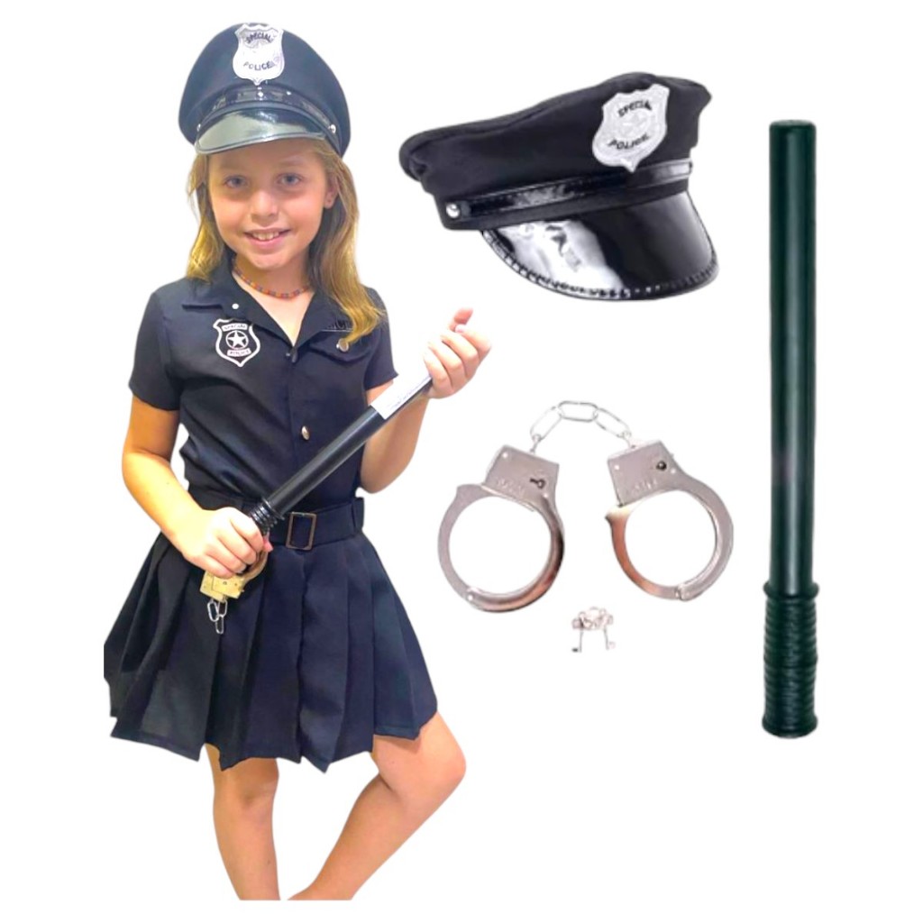 Fantasia Policial Infantil Feminina + Acessórios - Cosplay Polícia