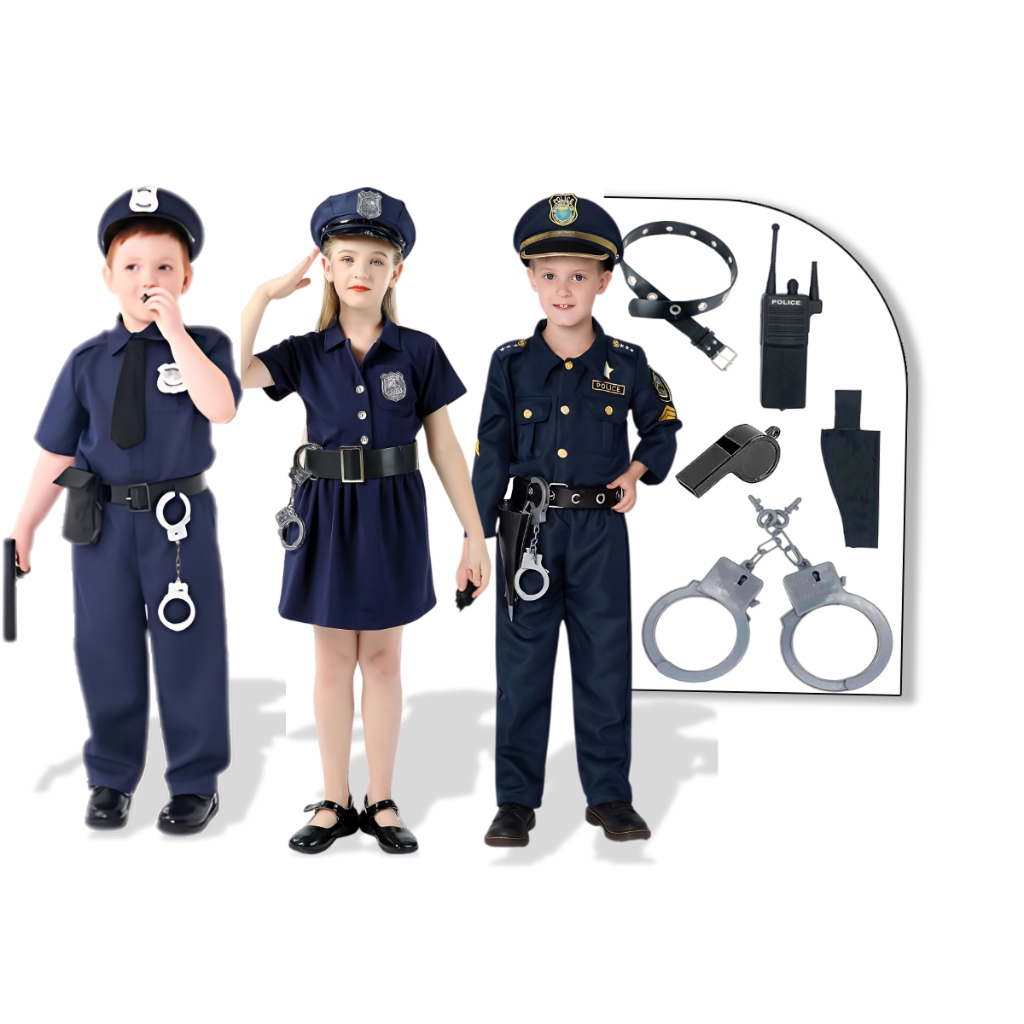 Fantasia Policial Masculina Feminina Infantil Carnaval Com Acessorios Completa Cosplay 8Pcs