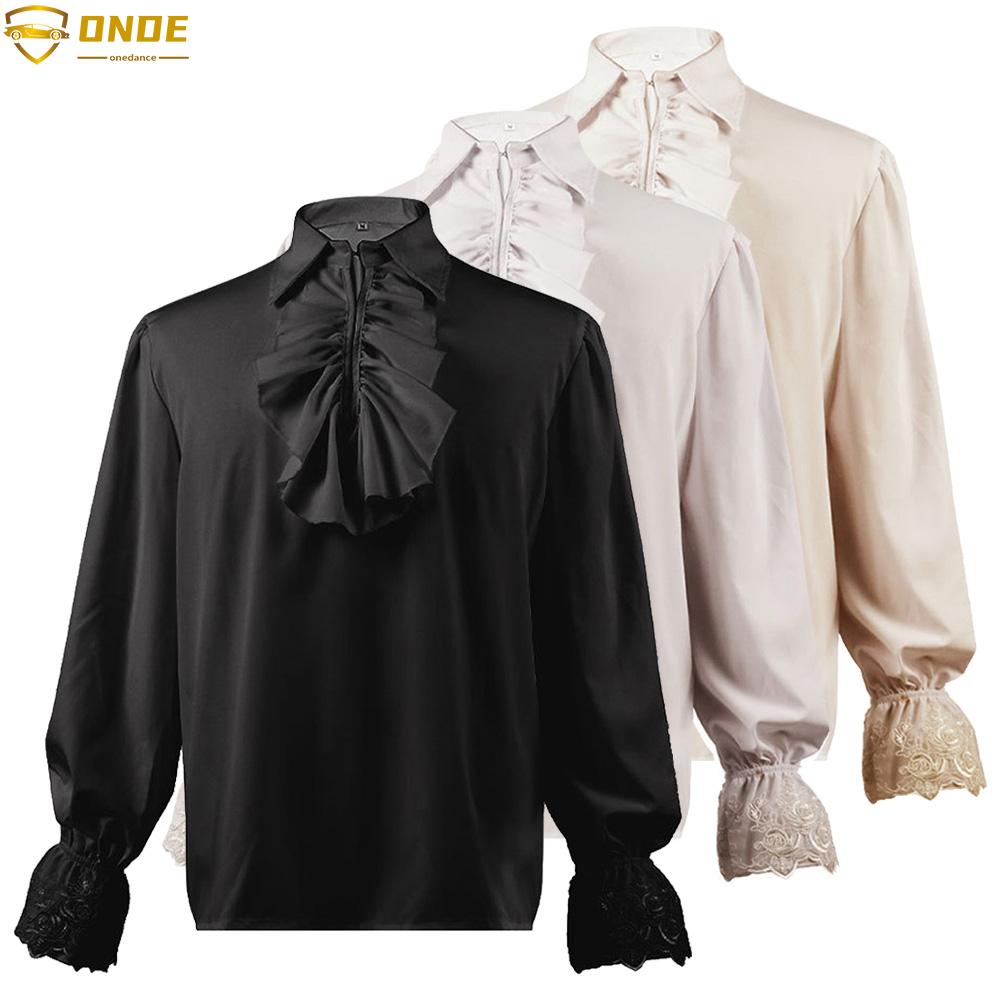 Camisa Gótica Medieval Masculina Frill Vitoriano Punk Manga Bufante Retrô Tops Fantasia Halloween Cosplay Vestidos Acessórios