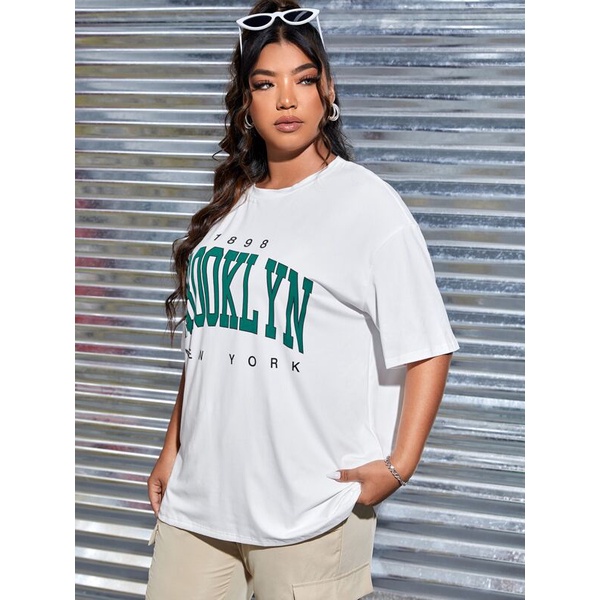 Camiseta Feminina Oversized Brooklyn New York Estilo de Rua Academia Corte Reto e Largo 100 % Algodão