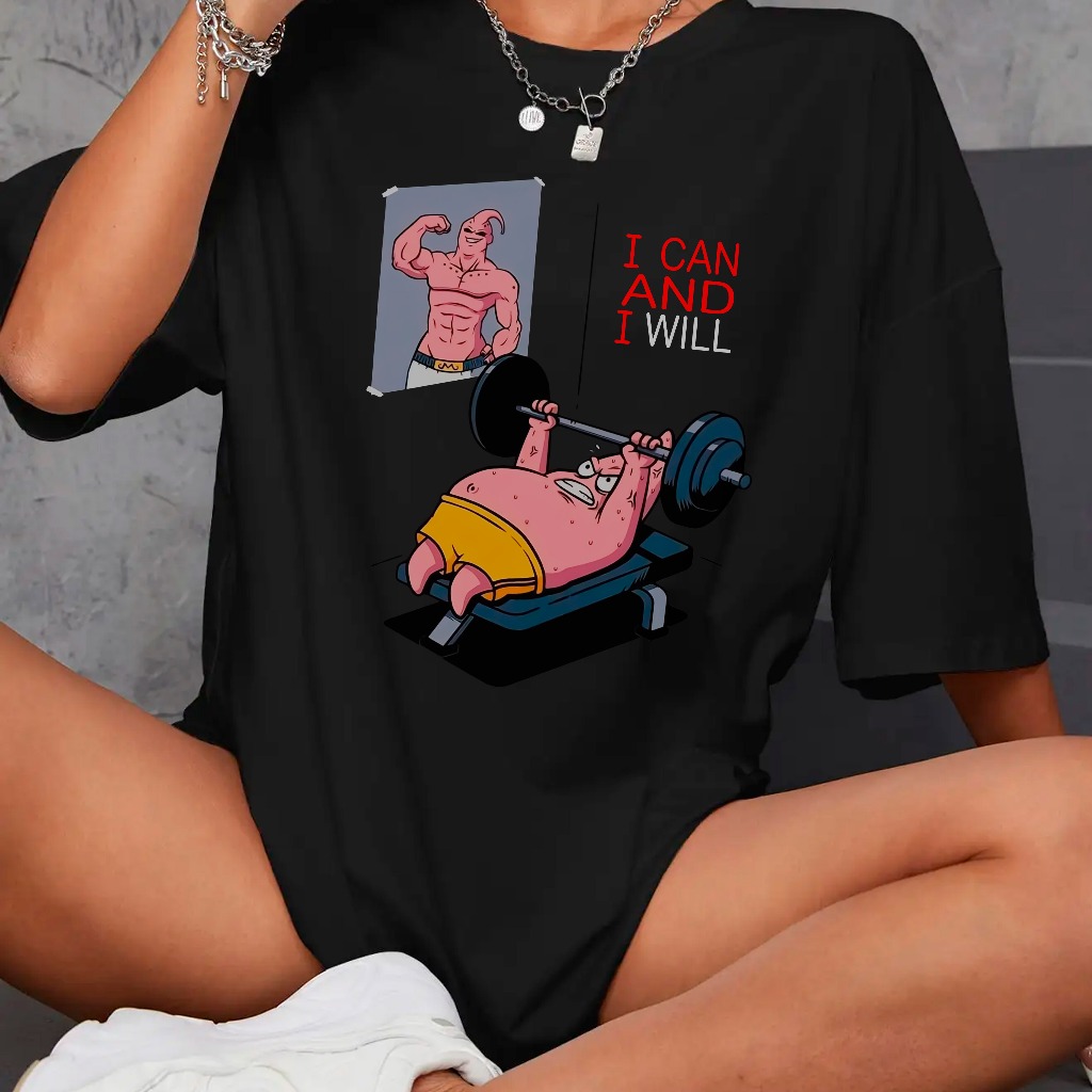 Camiseta Feminina Treino Academia Oversized Grande I Can And I Will 100% Algodão Fio 30.1 Penteado