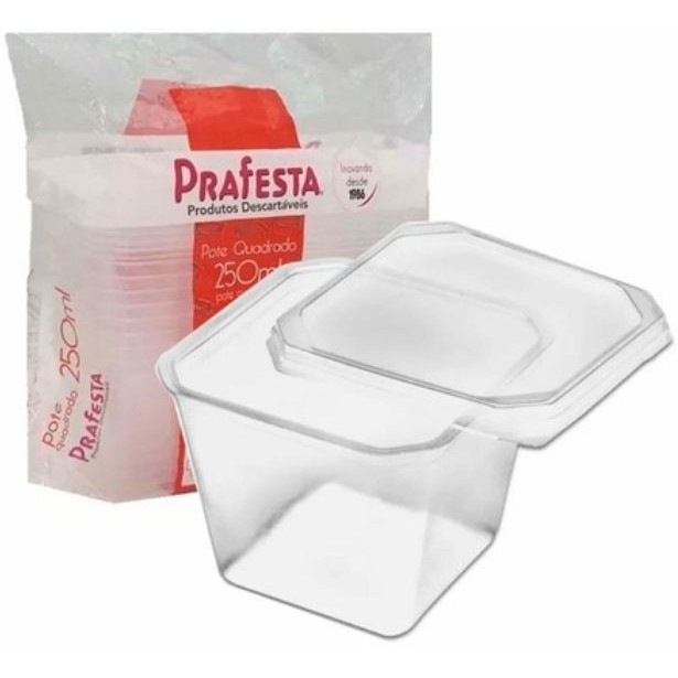 Pote Quadrado Plástico com tampa Lacre Bolo no Pote 220mL com 20, 40 e 60 Unidades