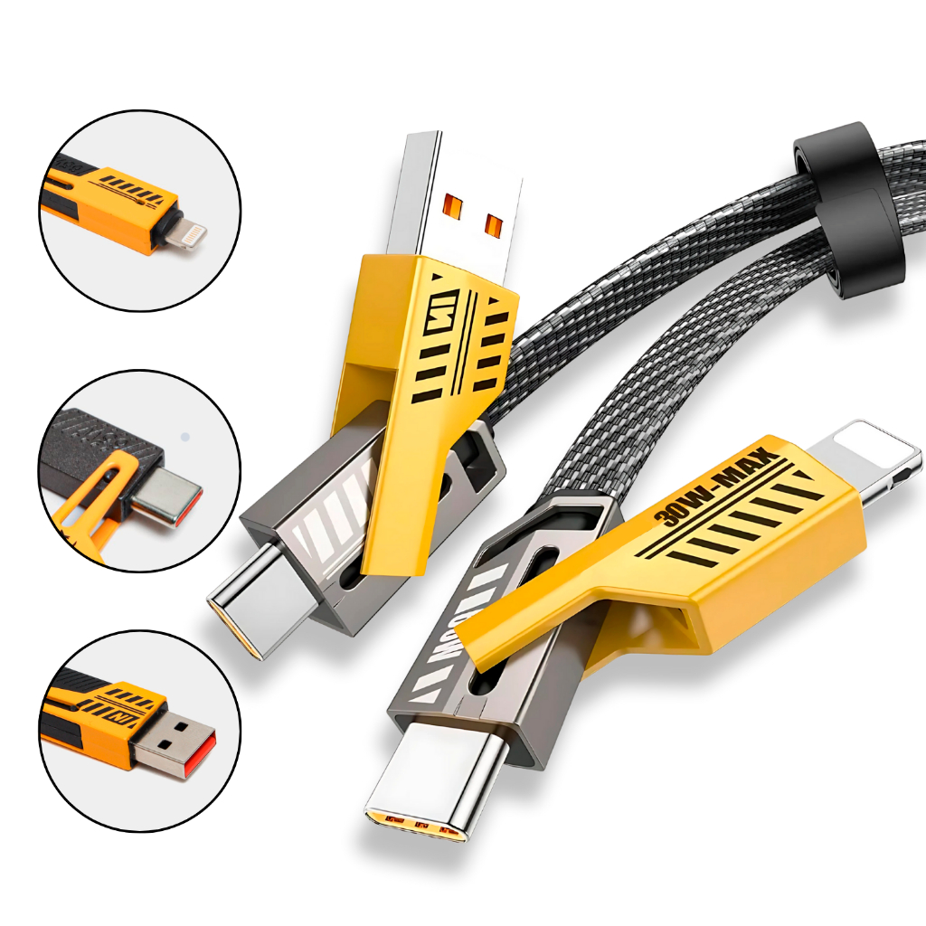 Cabo Carregador Turbo 4 em 1 65W Turbo Rápido Reforçado Tipo C iPhone Lightning USB-A Android Macbook Nylon - 1 Metro