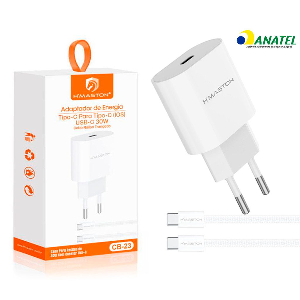 Carregador Turbo 30w Com Cabo Usb Tipo C para Tipo-C H'maston CB-23 Fonte 9A Cabo Reforçado De Nylon