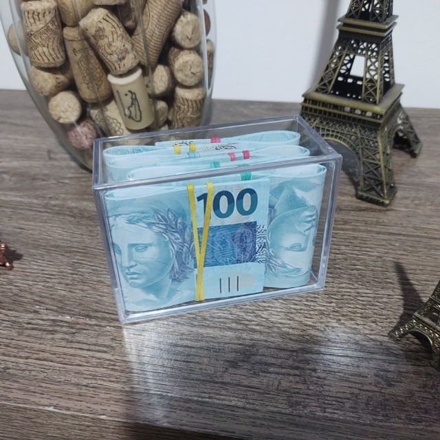 Caixa/Box Decorativa Acrílica/Plástica 100 Notas Dinheiro de Real