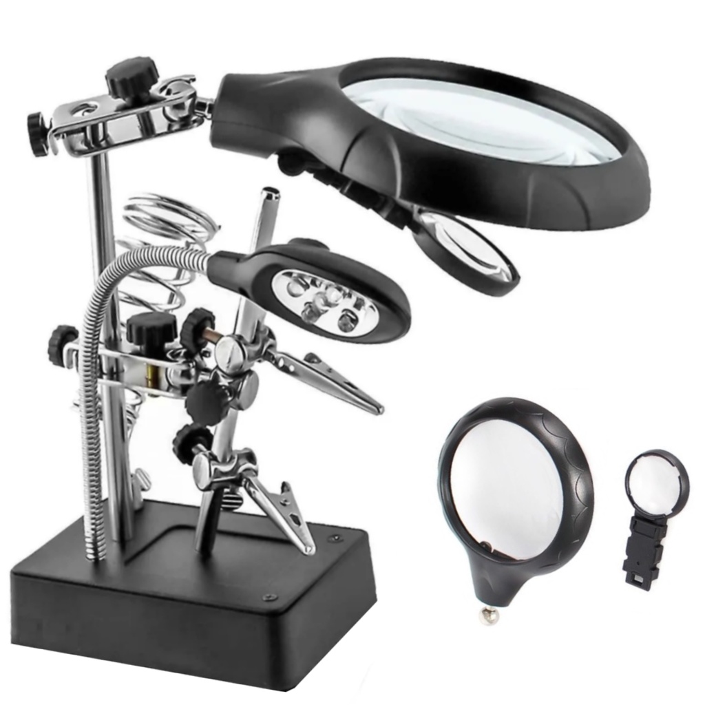 Suporte P/ Ferro Solda Lupa Articulável Led Com Garras de mesa