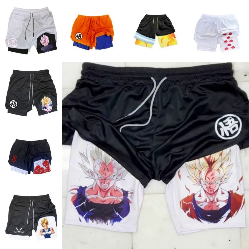 Hot Dragon Ball Filho Goku Shorts Anime Homens Dupla Camada Esportes Calças Curtas Dos Desenhos Animados Sportswear Jogger Respirável Calças de Praia Presentes